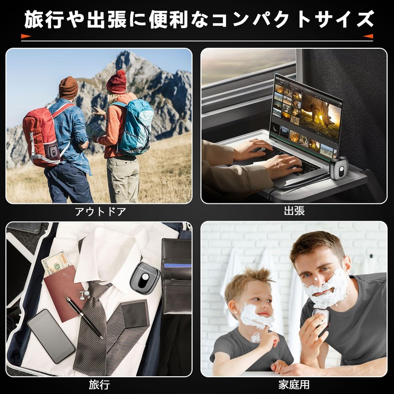 - 🔋【強力なパワーと高速充電】 このミニポータブル電動シェーバーはUSB-C充電式リチウムバッテリーで動作します。急速な1時間の充電で約60分間の使用が可能で、日常的な使用で30日分の十分な作業時間を提供します。この電動カミソリは、8100rpmの高速で静音なモーターを搭載しており、剃髭の作業を効率的に完了し、繰り返し作業を減らすことで、剃ることを簡単にします。