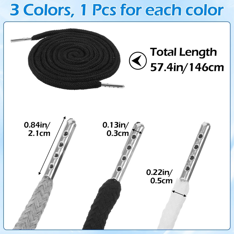 Tyqour Pack of 3 Cord for Jogging Bottoms, Hoodie, 140 cm, Jogging Bottoms, Band for Hoodie, Drawstring with Pull-Through Pin, Replacement Trouser Band, Hoodie Band