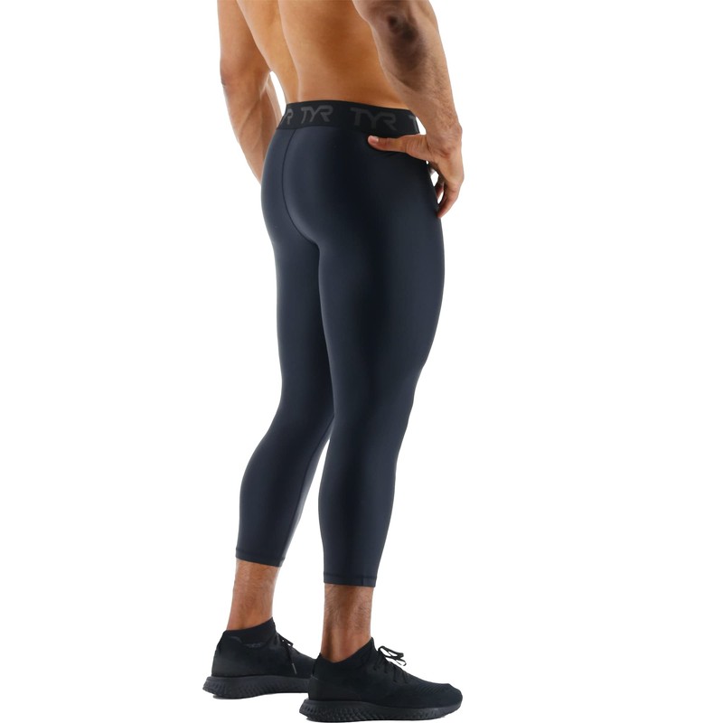 TYR Men's Standard Athletic Performance Workout Compression Cropped Pants, Black, Small