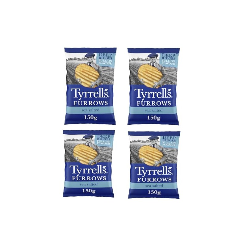Tyrrells Furrows Sea Salted Sharing Crisps 150g (4 Pack)