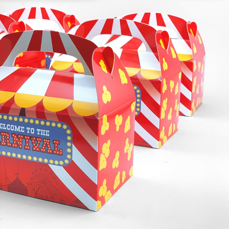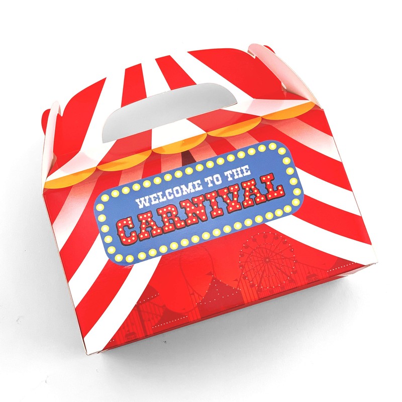 Tytroy 12 Pack Carnival Themed Cardboard Paper Treat Boxes Gable Party Favor Bags Birthday Party Event (12pc)
