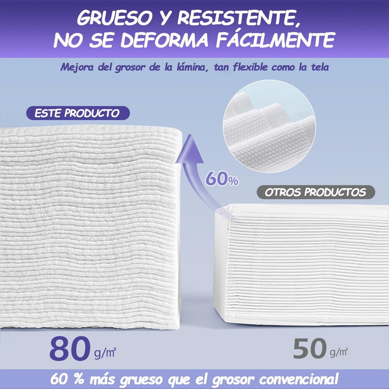 • Suaves y resistentes: estas toallas faciales desechables están hechas de 100% fibra de algodón, tres veces más gruesas que las normales, pero más suaves y duraderas. Perfectas para limpiar superficies, cocinas y cuidado del bebé.