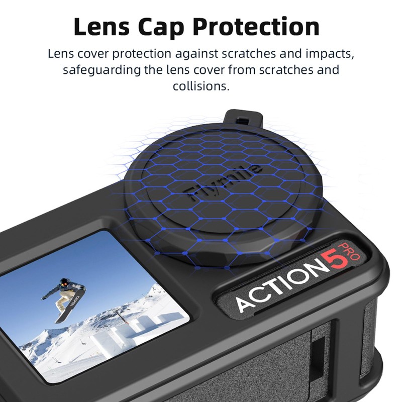 TYUANDOUER Silicone Case for DJI Osmo Action 5 Pro, 4-in-1 Set Protective Sleeve Cover for DJI Action 5 Pro with Lost-Proof Strap/Neck Strap/Lens Cap - Black