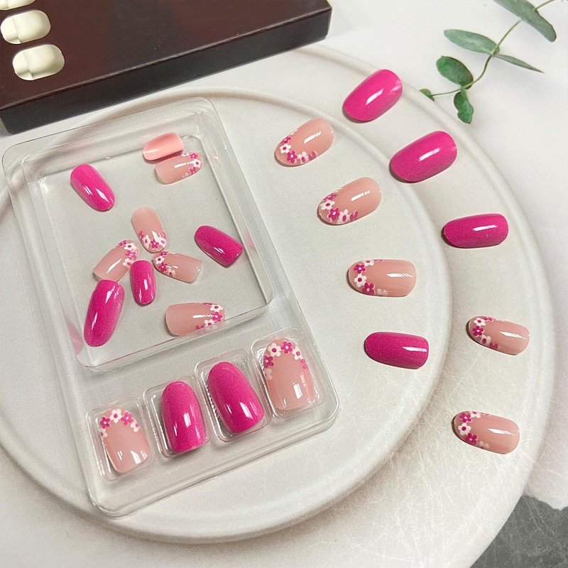 - 【Easy to Use】: Choose the suitable pink white flowers fake nails, polish the nail bed, paste the jelly glue we give you, press the fashion nail art in 30 seconds, and create the nail art that girls like,If the size is not suitable, it can be polished to the size of the nail cap with a friction tool.