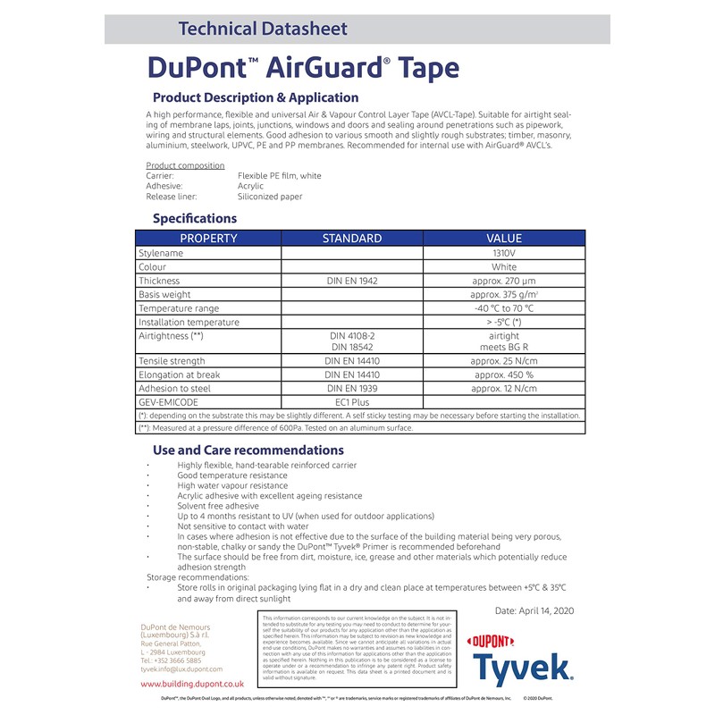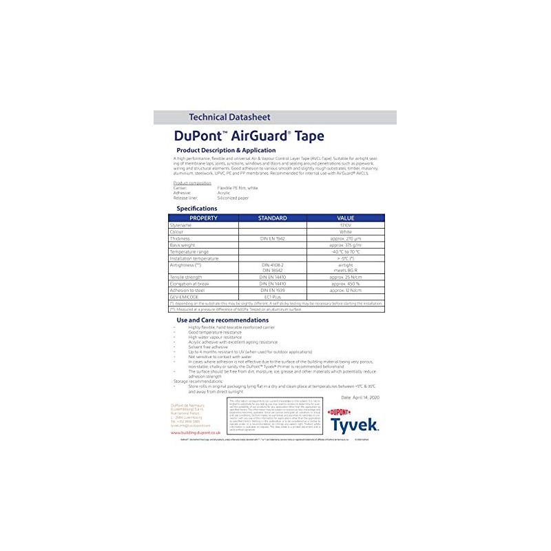 Tyvek Dupont AirGuard Single Sided Tape, Width: 60mm, Length: 25 m, (1310V)