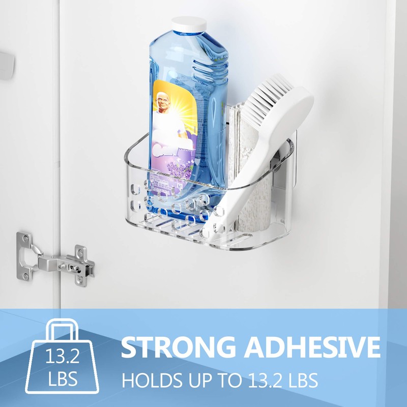 TZAMLI Wall Mounted Shower Organizer, Acrylic Cabinet Door Organizer, Clear Shower Caddy Storage Basket, Self-Adhesive Shelf for Bathroom Kitchen Pantry, Small