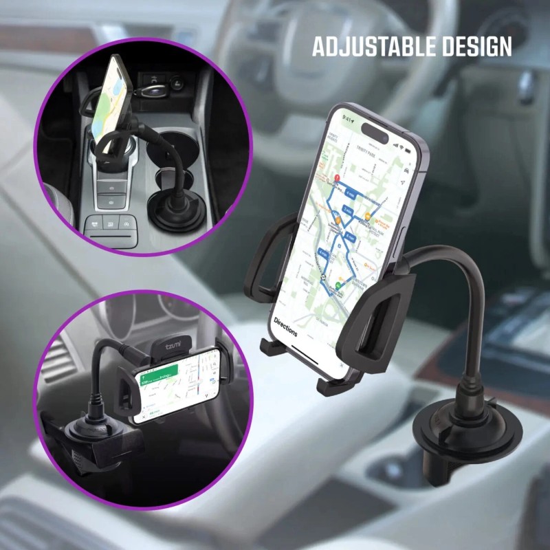 TZUMI FLEXI VIEW AUTO CUP HOLDER PHONE MOUNT FULLY ADJUSTABLE GOOSENECK HOLDER