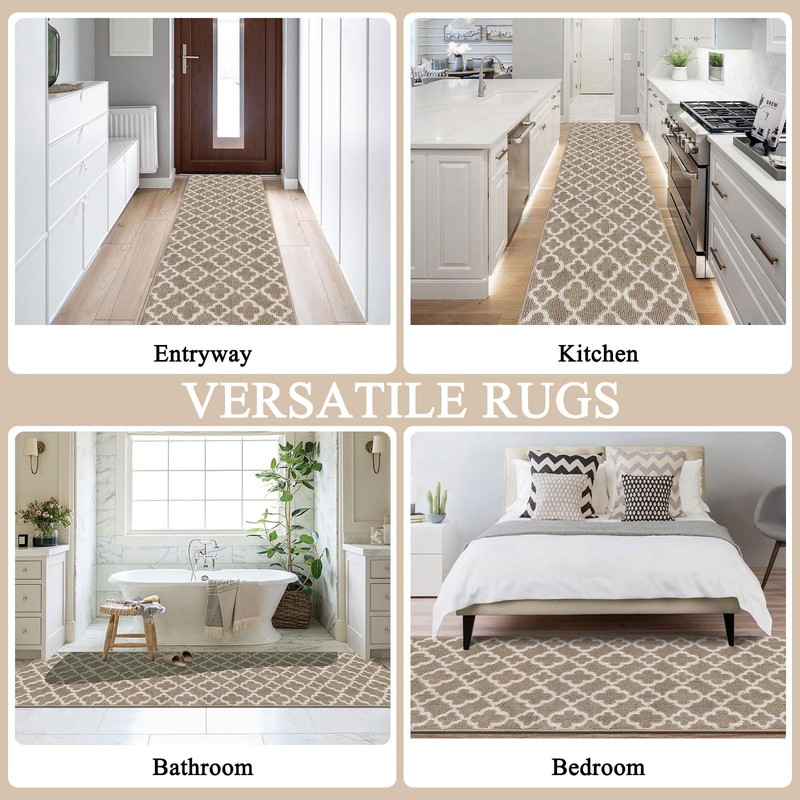 - Versatile Runner Rug: Various sizes are available, you can refer to our size classification. Note: Please measure the size of the area you want to use in advance, so that the package you receive will be better when you use it. The neutral color design and reliable material of this washable runner rug allow it to be used in a variety of scenarios such as: laundry room, hallway, kitchen, by the sink, living room, bedroom, office, balcony, porch and any other high traffic areas in your home