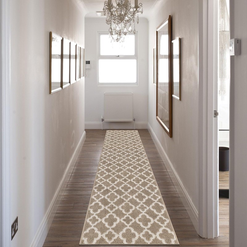 U'Artlines Long Runner Rug for Hallway 2×8feet Non Slip Kitchen Floor Carpet Runners Beige Geometric Pattern Machine Washable Area Rug for Entryway Bathroom