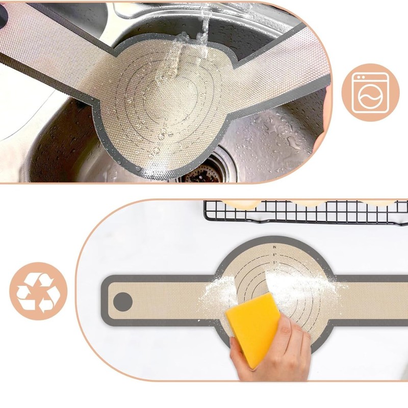 - ASAS LARGAS: Hemos diseñado asas largas en ambos lados del tapete de silicona para hornear. Este diseño hace que sea fácil sacar el producto terminado mientras evita quemaduras, protegiendo tus manos.