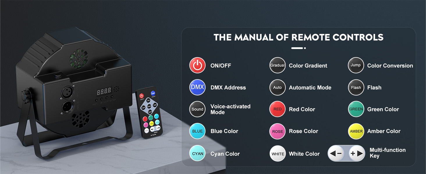 - Versatile Placement: This par light is versatile and adaptable. Place it on the floor or table to illuminate any corner, whether you're hosting a party, staging a show, holding a concert, running a bar, organizing a wedding, setting the mood in a club, pumping up a disco, or enjoying a family night. With this dmx light, you're easily able to create unforgettable experiences.