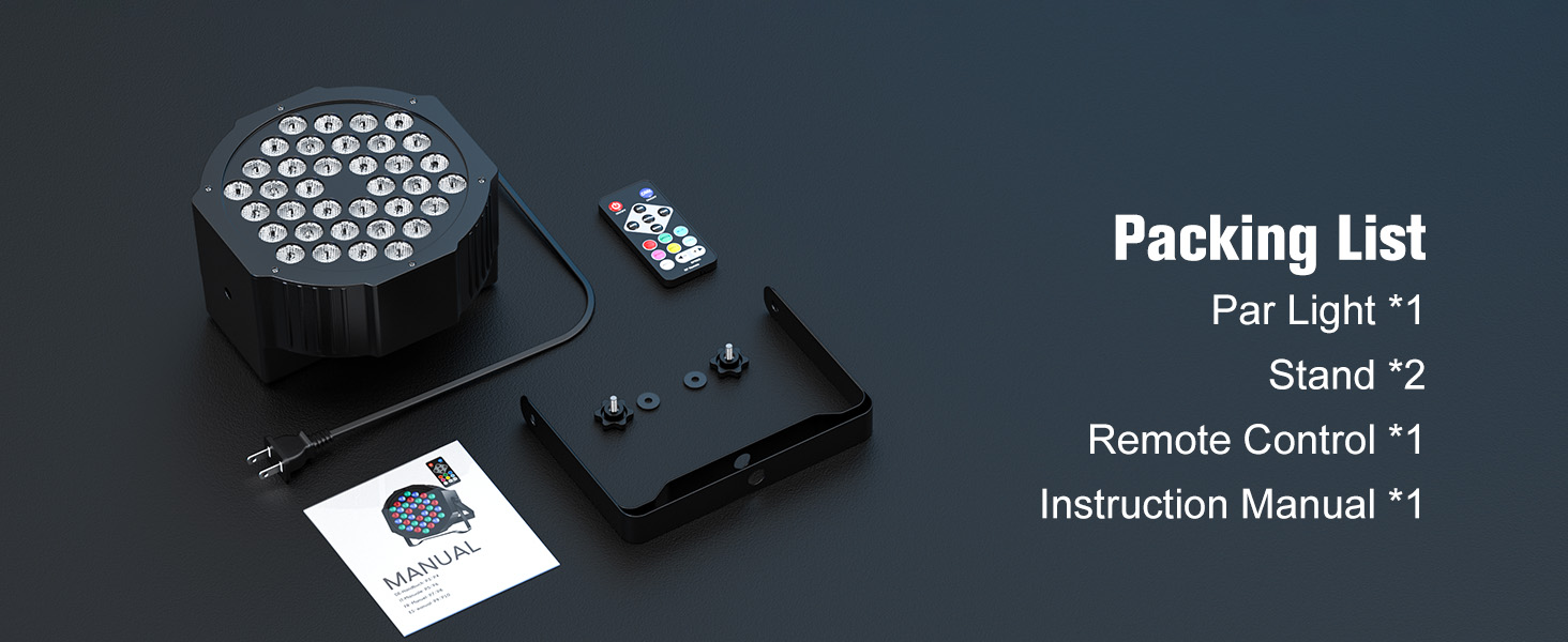 - 36 LED Stage Light: Elevate your stage presence with our stage light featuring 36 vibrant color light beads, including 12 x red, 12 x green, and 12 x blue. With adjustable brightness up to 255 level, this spotlight emits a dazzling radiance, instantly transforming any space into a dynamic party hub while enhancing the stage's focal point.