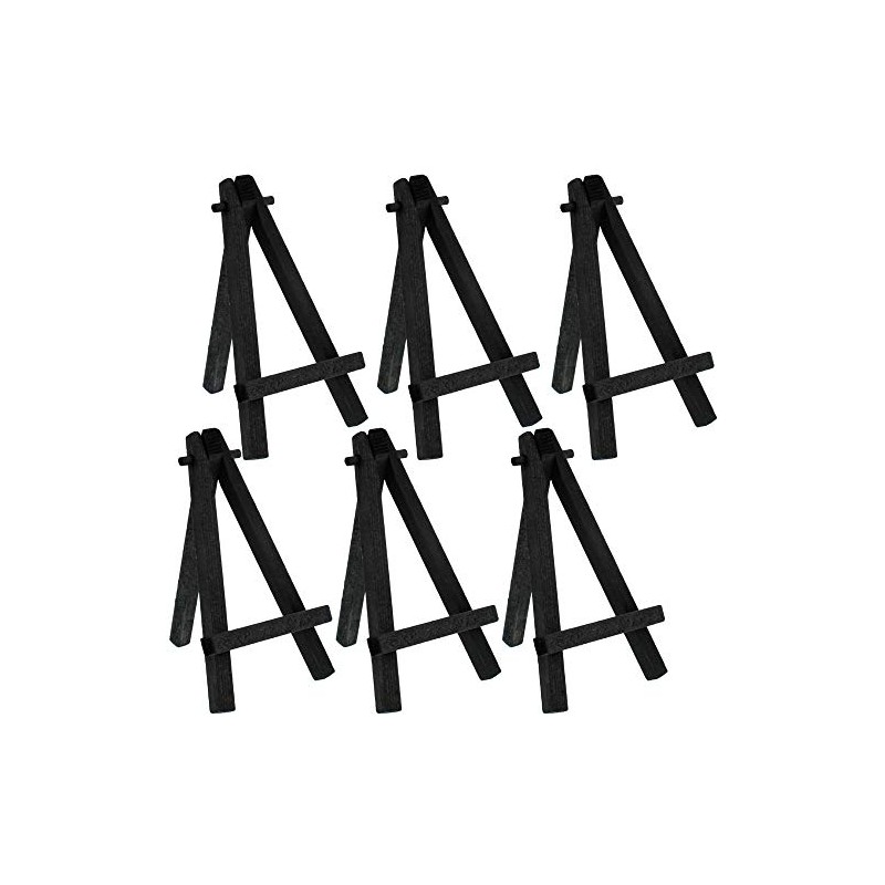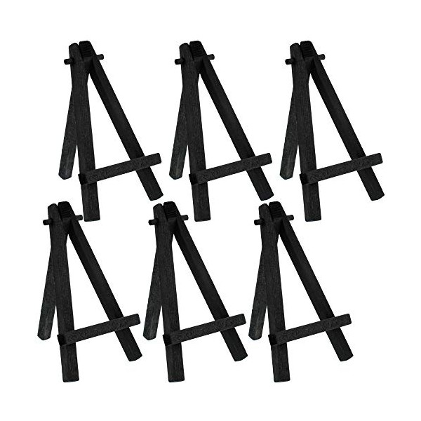 U.S. Art Supply 8" High Small Black Wood Display Easel (Pack of 6), A-Frame Artist Painting Party Tripod Mini Easel - Tabletop Holder Stand for Canvases, Kids School Crafts, Event Signs, Photos, Gifts