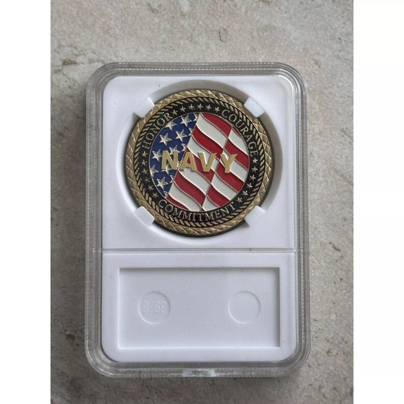 Struck in a brass alloy and imbued with bright enamel on both sides, this coin comes packaged with a detailed header card that describes the courage and dedication of America's Navy veterans.