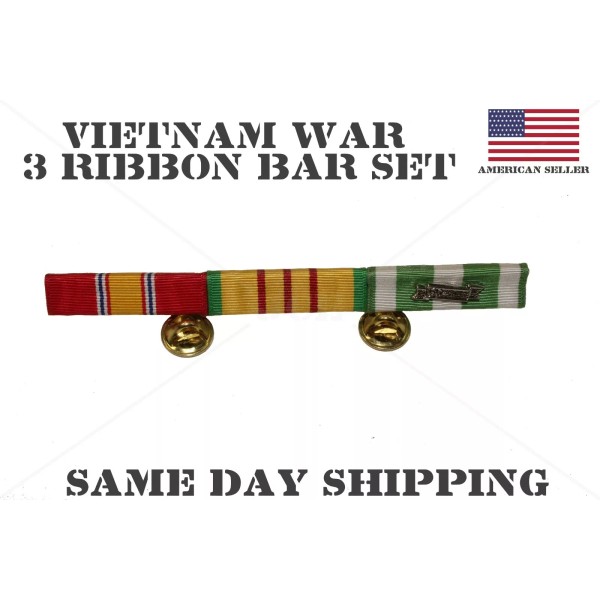 U.S. VIETNAM WAR SERVICE MOUNTED 3 RIBBON BAR W/ HOLDER ALL MILITARY BRANCH SET