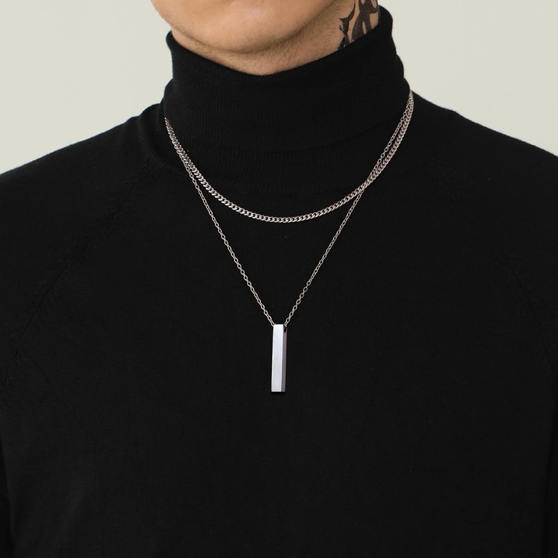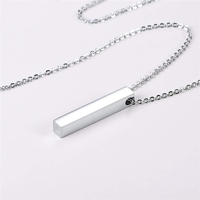 U7 Cubic Zirconia Customised Bar Necklace Gifts for Couple Chains Cuboid Pendant Necklaces