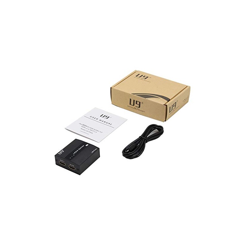 • Package includes: U9-Pluto 1x2 Splitter, User Manual, 5FT USB Power Adapter Cable. 5V USB charger is not included, but necessary to run this splitter properly
