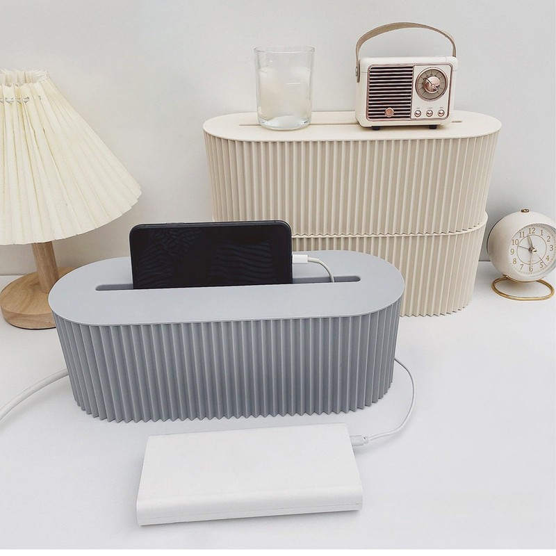 Uadme Cable Management Box, Innovative, Simple Cable Cover for Desk, Cable Holder, Socket Storage Box, White