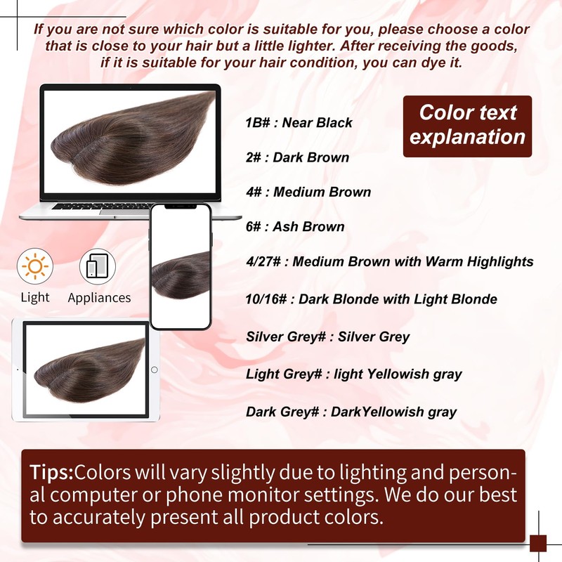 - Who needs us: This women's hair toppers is very suitable for people in the early stage of hair loss or dyeing embarrassment. It covers sparse hair and new hair of different colors after dyeing, and can increase some hair volume. Please note that this product requires enough hair to fix the clip, and is not suitable for people who are close to baldness.