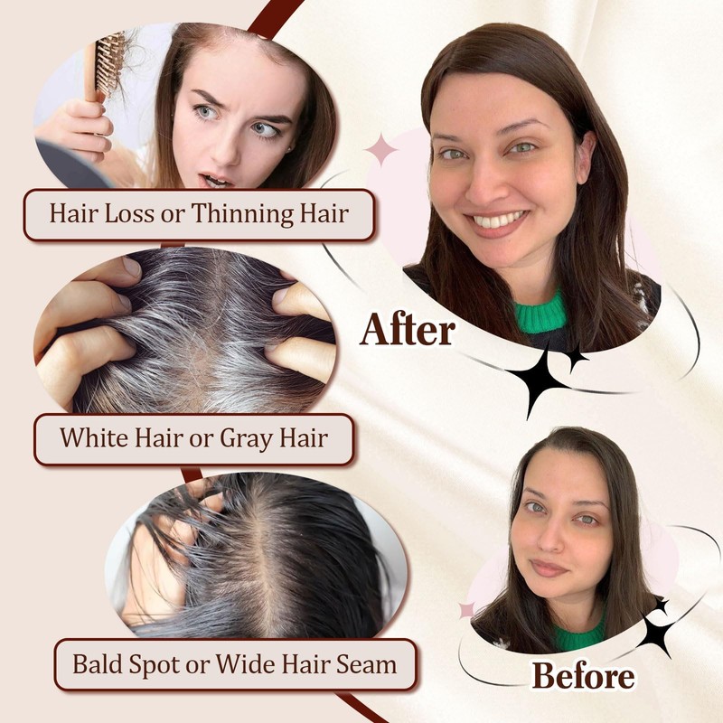 - Who needs us: This women's hair toppers is very suitable for people in the early stage of hair loss or dyeing embarrassment. It covers sparse hair and new hair of different colors after dyeing, and can increase some hair volume. Please note that this product requires enough hair to fix the clip, and is not suitable for people who are close to baldness.