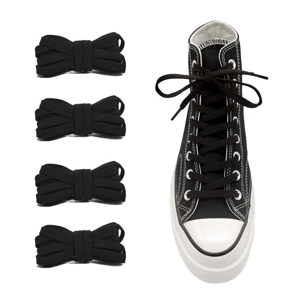 - 【2 Pairs in a Pack】: 2 pairs stretch Black flat shoe laces(4 laces),5/16" wide,54inch length,fits 7-8 shoe eyelets.Our elastic shoelaces can choose from many lengths.Please check your original shoe laces length before buying. Slip on/Slip off, these stretch replacement shoestrings are quick and easy.