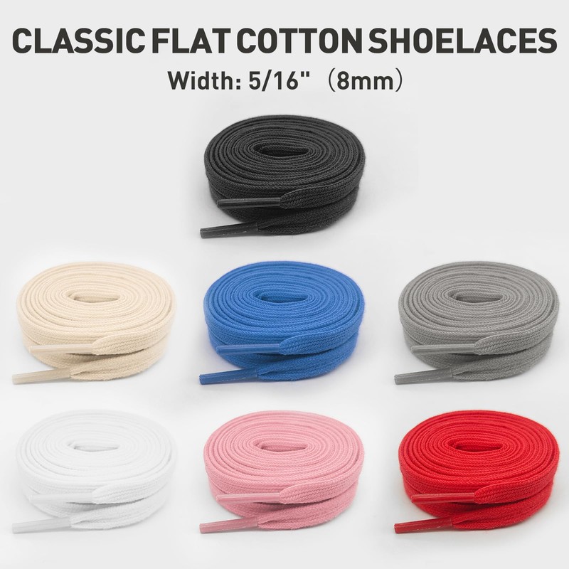 - 【Strong Fasten】 : The flat cotton shoestrings for sneakers stay tied tightly, you don't worry about them coming untied during activities. They can perfectly pass through the shoe holes and remain strong fastened.