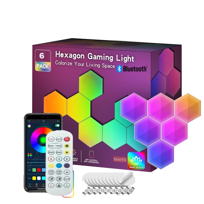 UanTii Smart Hexagonal Lamp,Bluetooth RGBIC LED Panel Light Smart Night Light Gaming Light with Bluetooth App Control (6)