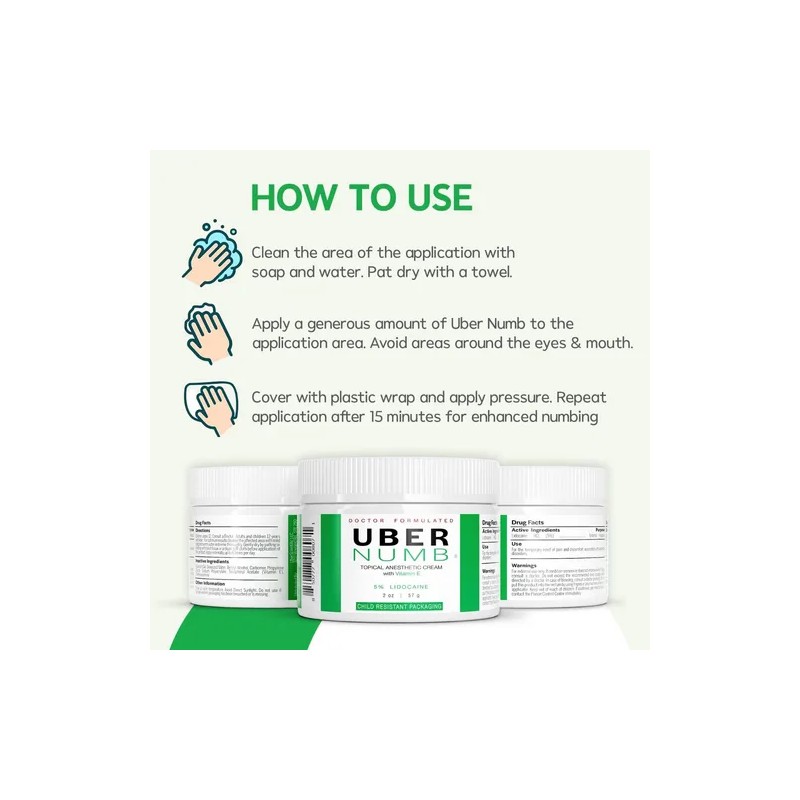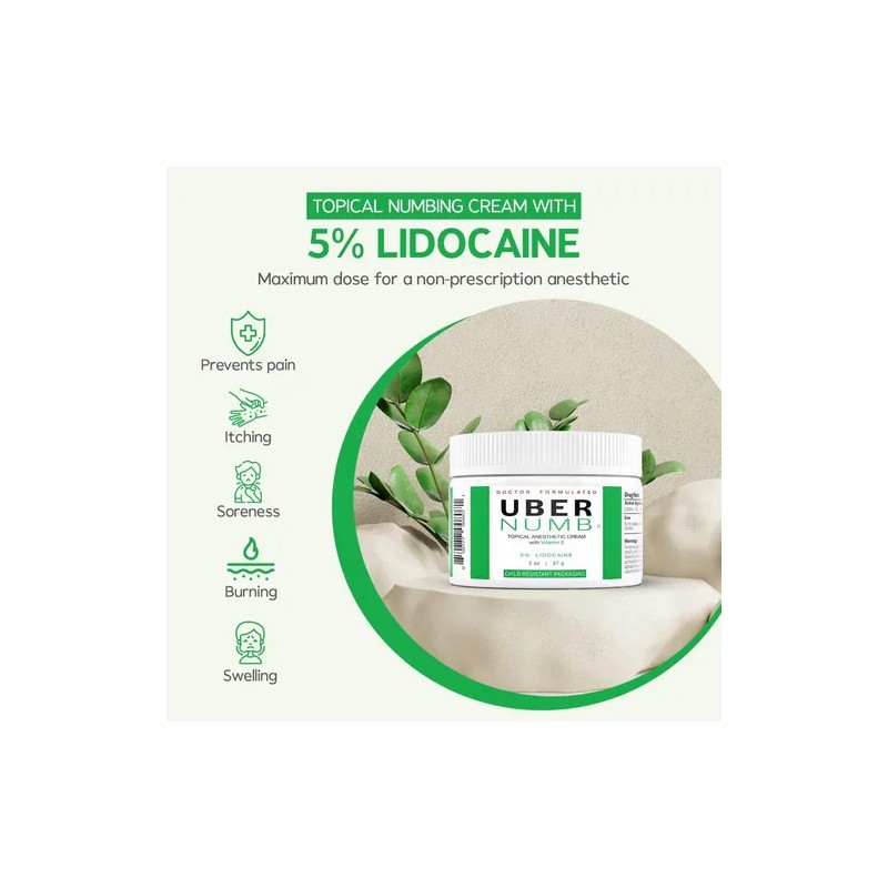 Uber Numb 5% Lidocaína Tópica, Crema Anestésica