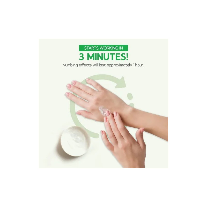 Sin olor, sin aceite y no grasoso, formulado por médicos. Crema anestésica a base de agua para una fácil aplicación y eliminación sin ensuciar