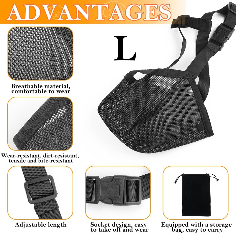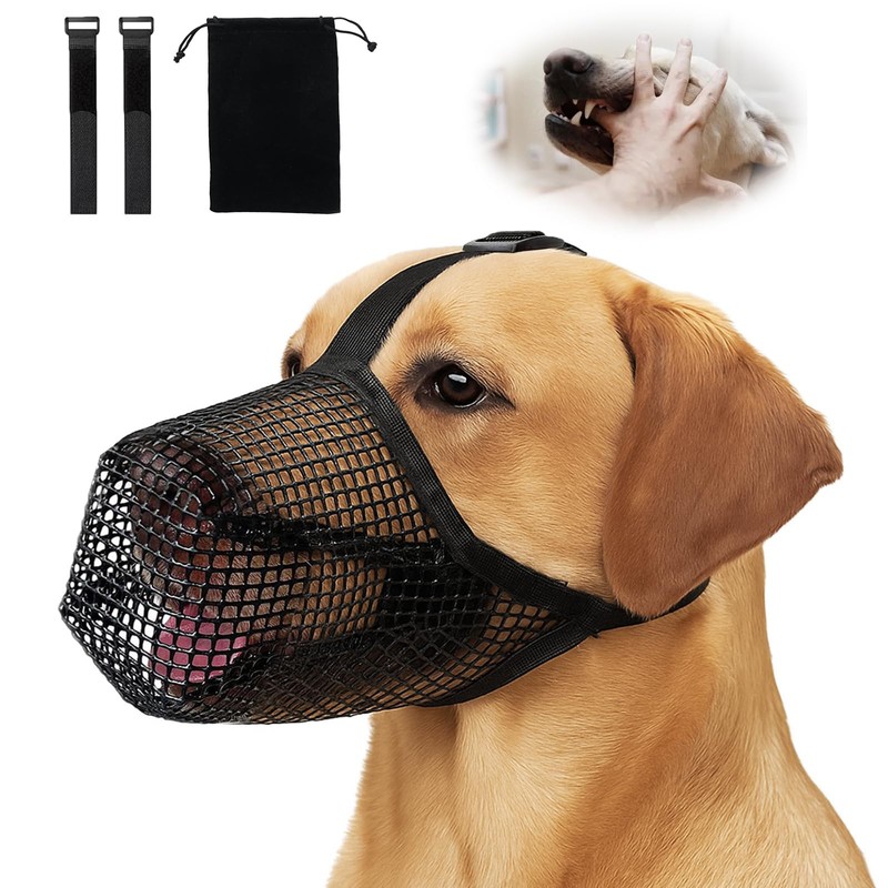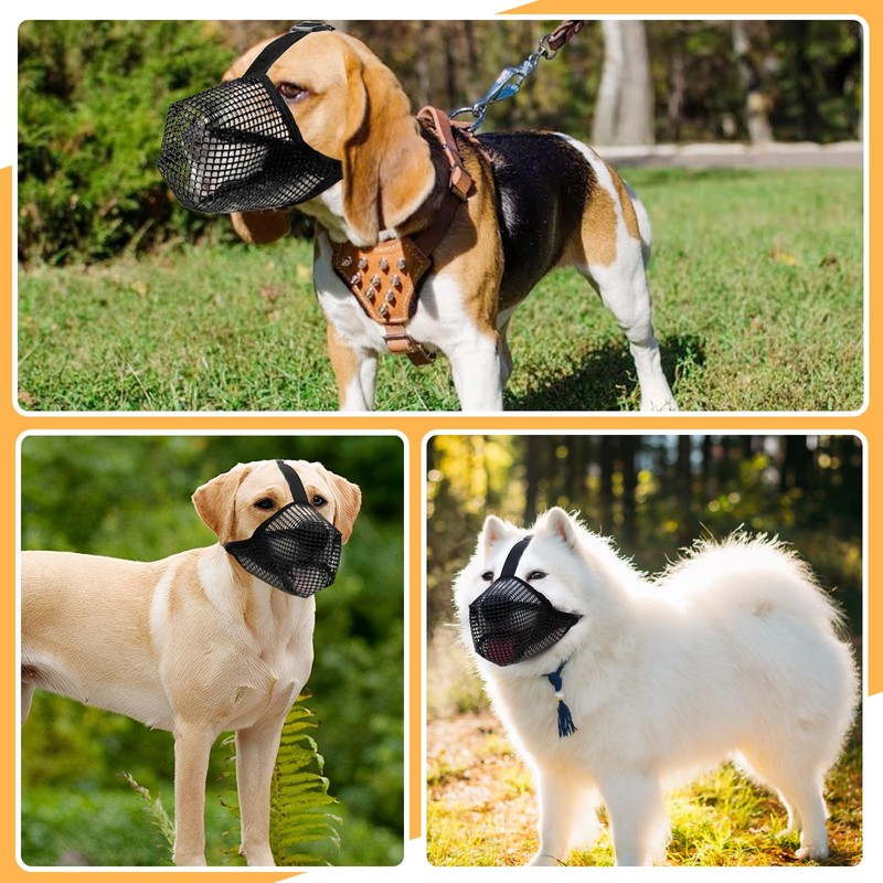 - [Material]: Our soft mesh muzzle is made of durable nylon material, which is comfortable to wear, wear-resistant and tear-resistant. The soft mesh design is very breathable and does not affect the drinking, breathing or heat dissipation of the dog