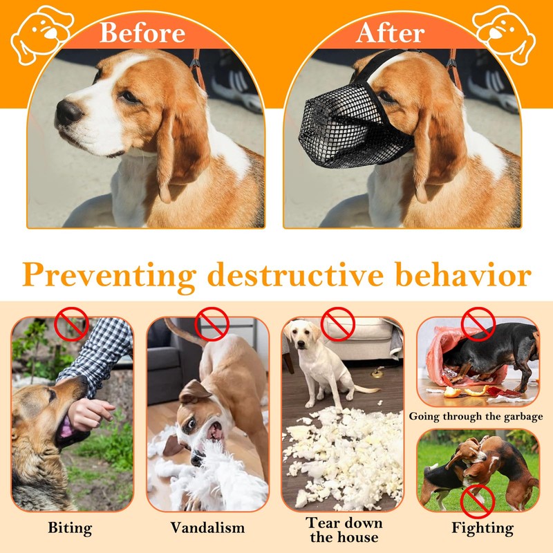 - Safety muzzle: the dog muzzle can be used as a pet mask to gently hold the dog back. Reduce bad behavior of your dog during veterinary examinations, public transport, training or daily walks, such as B. Loud barking, biting, chewing, fighting, wound licking and destruction of the house, etc.