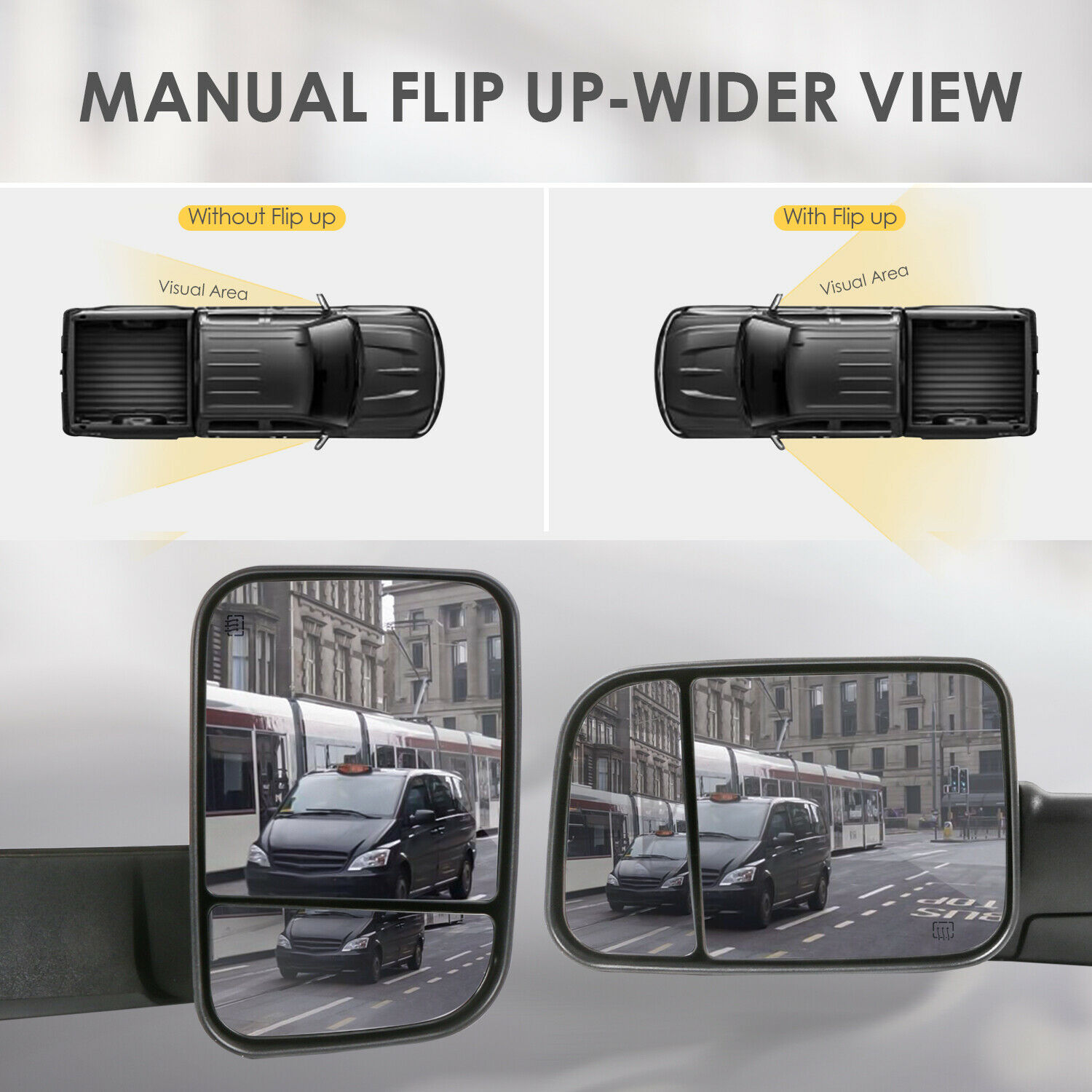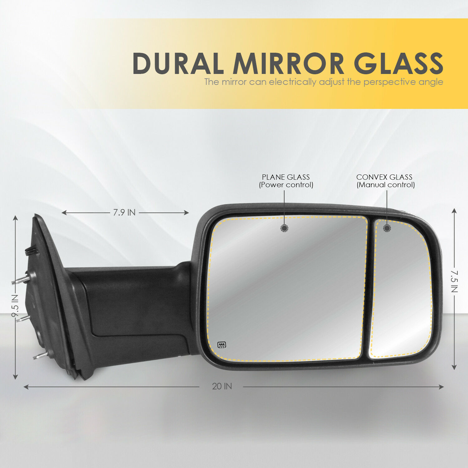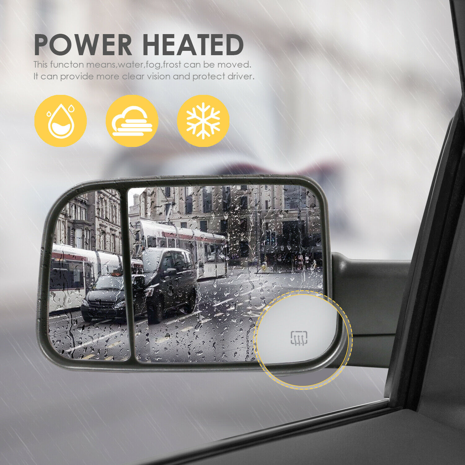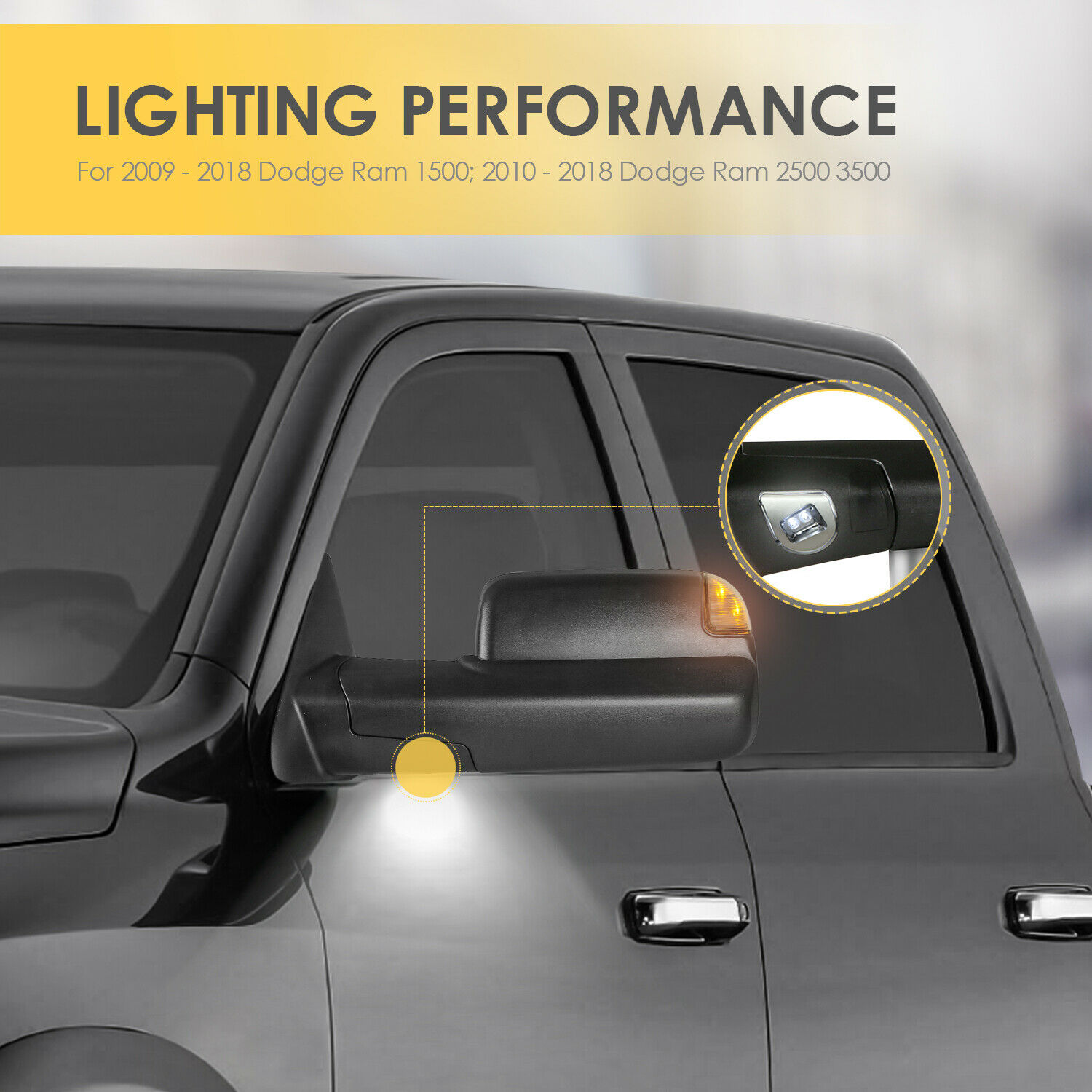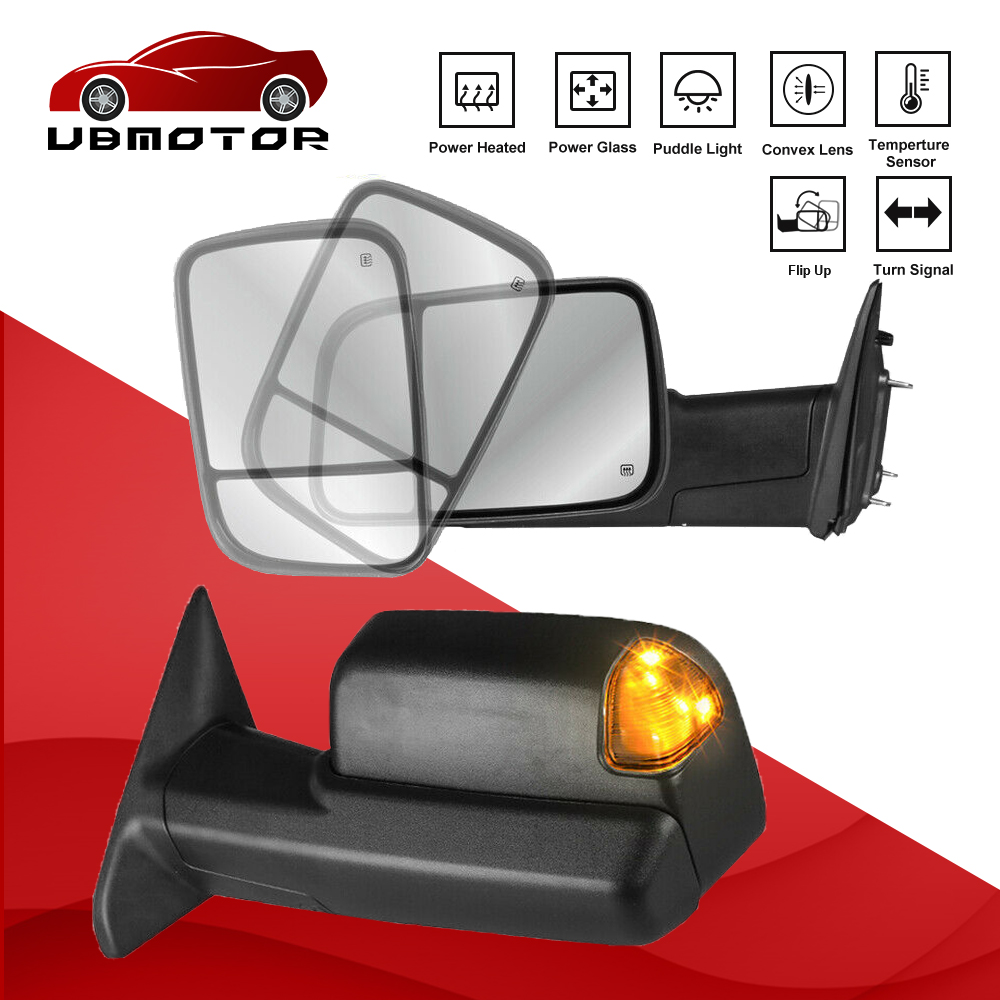 Ubmotor 2Pcs Power Heated Tow Mirrors w/Temp Sensor Puddle Light For 09-18 Ram 1500-3500