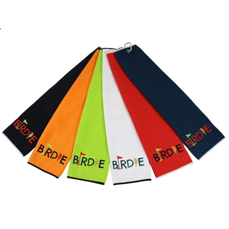 - Function:This soft and absorbent microfiber Tri-fold towel keeps your golf accessories clean and dry. Constructed with a waffle-weave to easily remove even the most stubborn dirt in club grooves and ball dimples, ensuring that you get the best out of your game.The sturdy carabiner is easy clipping on and off your bag.
