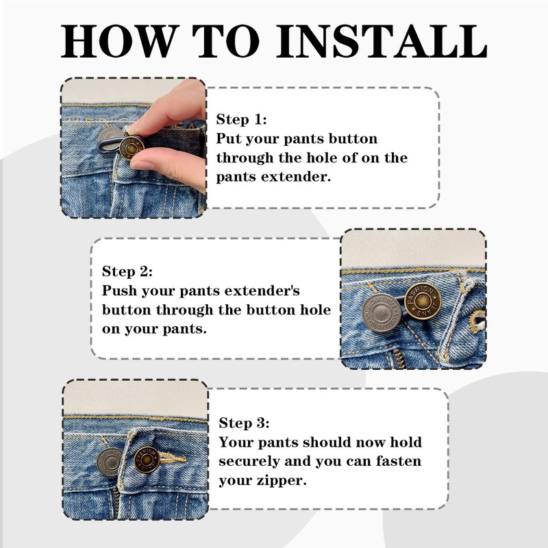 - Easy to use, No need to sew the waist extender on the pants or belt, just insert the button into a gap in the extender, and then fix the extender button through the pants hole.