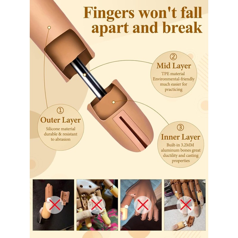 - Langlebige und flexible Finger: Ausgestattet mit 3,2 mm integrierten Aluminiumknochen, sind die Finger dieser Übungshand sehr flexibel und langlebig. Sie können wiederholt in verschiedene Winkel gebogen werden, ohne zu brechen, und imitieren echte menschliche Handbewegungen für realistischere Übungen.