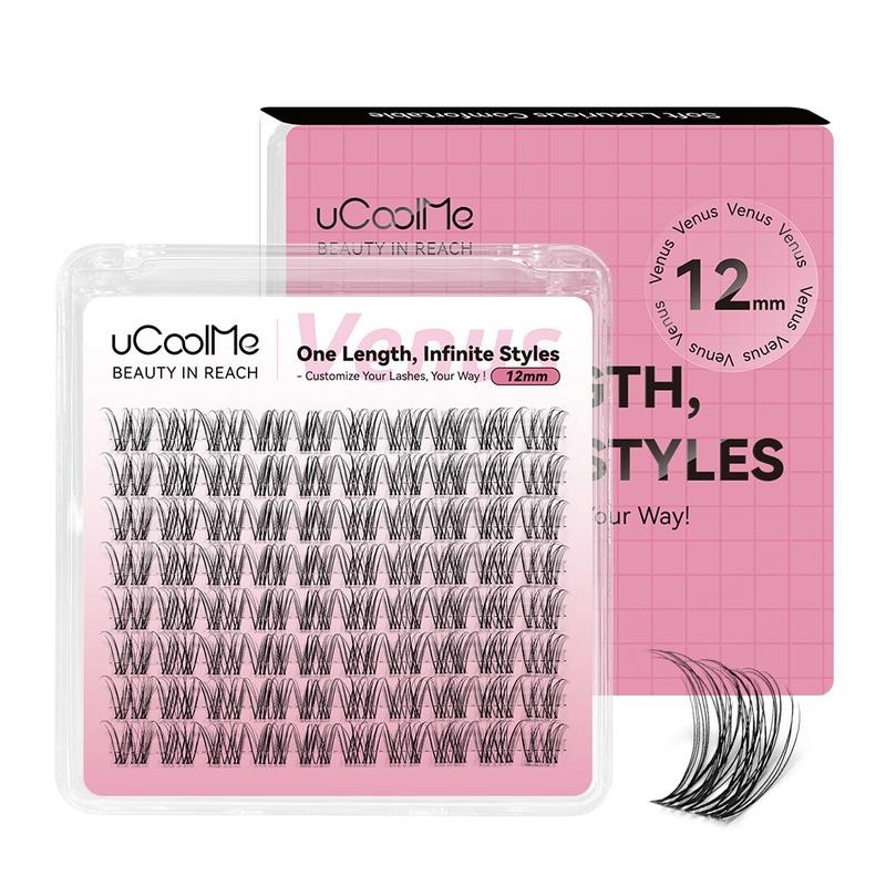 uCoolMe Venus One Size Lashes Individual Eyelashes Cluster Eyelash with Upgrade Invisible Band 8 10 12 14 16mm Lash DIY Extension Soft comfortable Easy Apply Natural Look for Makeup Daily Life Spring Glow Up:_Black Glue ( Bond&Seal )
