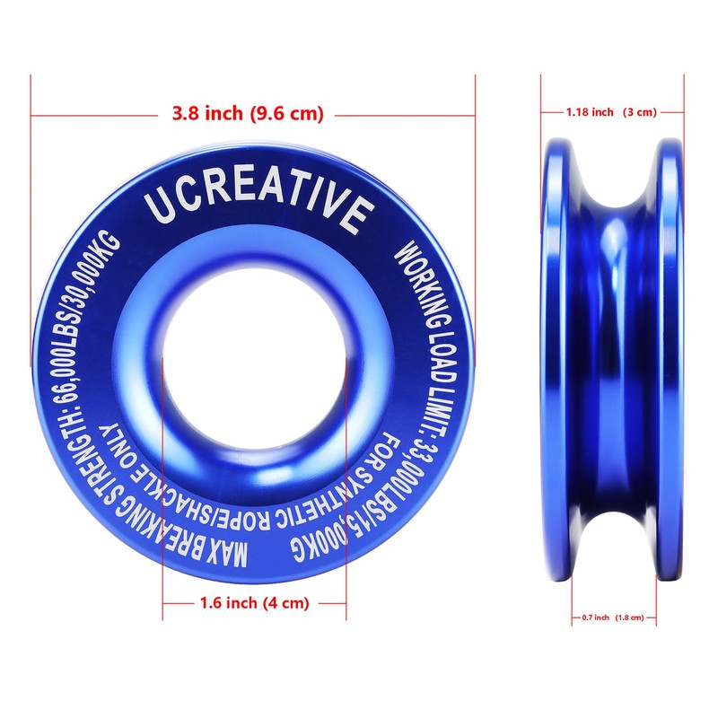- Recovery ring is suitable for soft shackle and synthetic winch rope. No sharp and little damage to soft shackle compared with snatch block