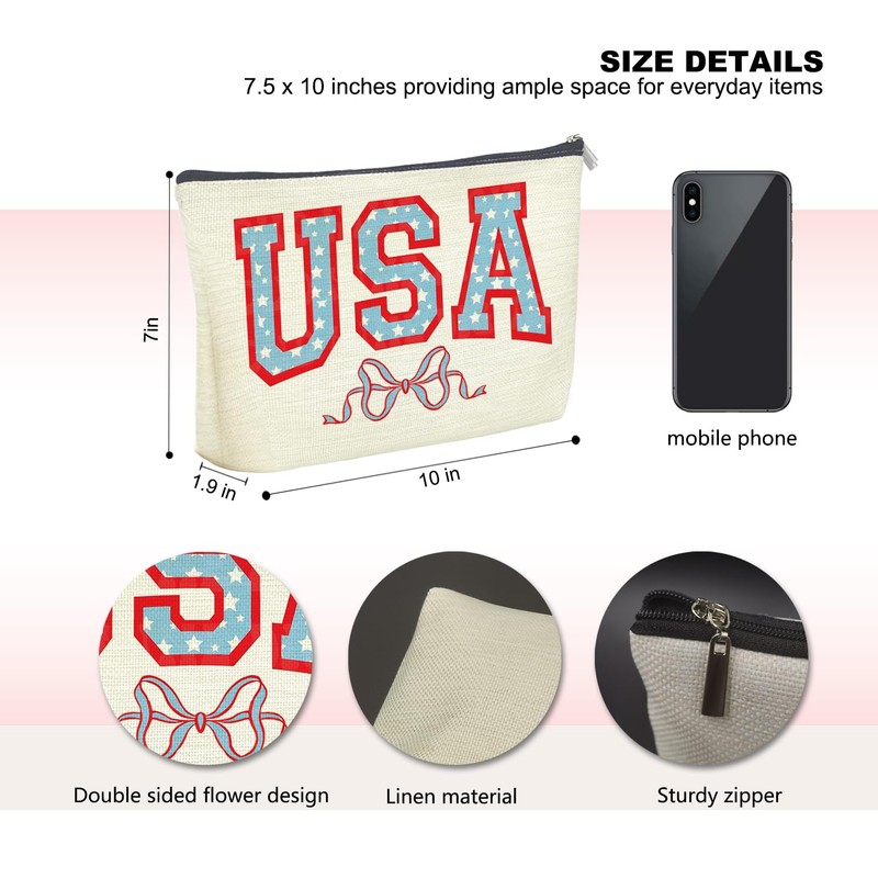 Udinaz USA Coquette Bow Makeup Bag, Patriotic Makeup Bag, Aesthetic Makeup Bag, 4th of July Gifts, Coquette Gifts for Women