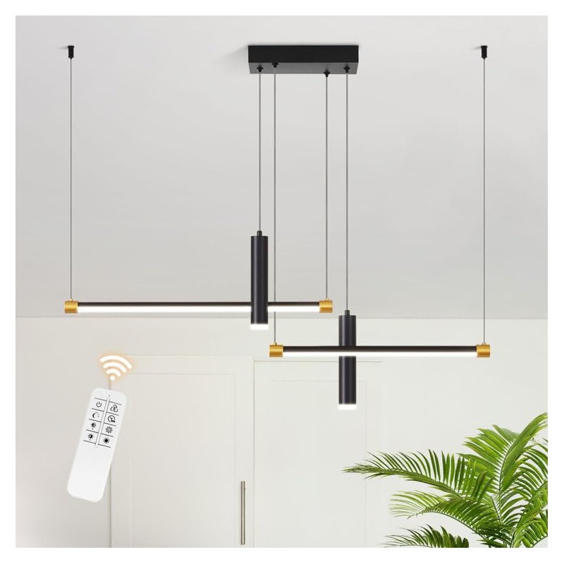Udorich Modern Adjustable Dimmable Linear LED Pendant Light for Kitchen Island, 4 Lights, Remote Control, Gold and Matte Black