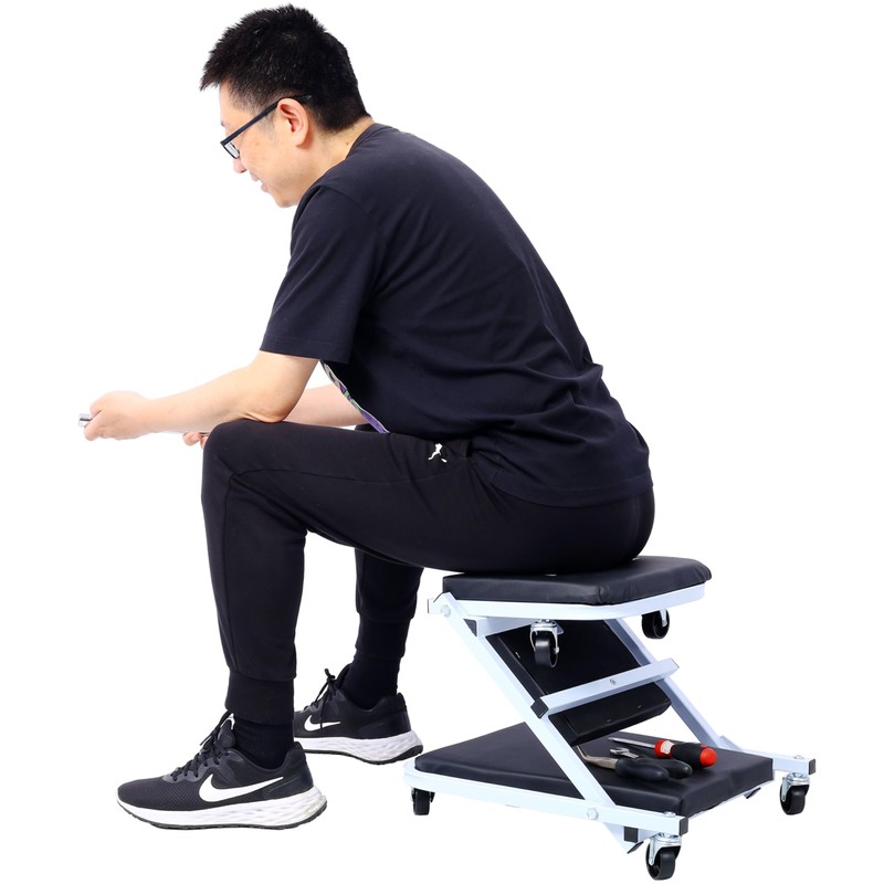 This innovative mechanic creeper is designed to easily convert into a stool, offering the ultimate convenience for vehicle maintenance. Slide under your vehicle with ease and transition to a comfortable seat to work at a lower level, significantly reducing strain on your back and knees.
