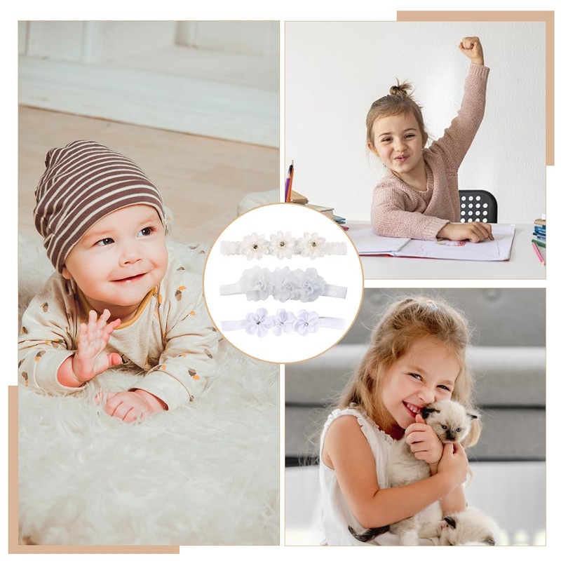 UEIOAVL Baby Jewelry, 3 Pieces Baby Hair Bands Kids Headbands with Flowers Elastic Hair Bands for Newborn and Toddler Hair Accessories for Party (White)
