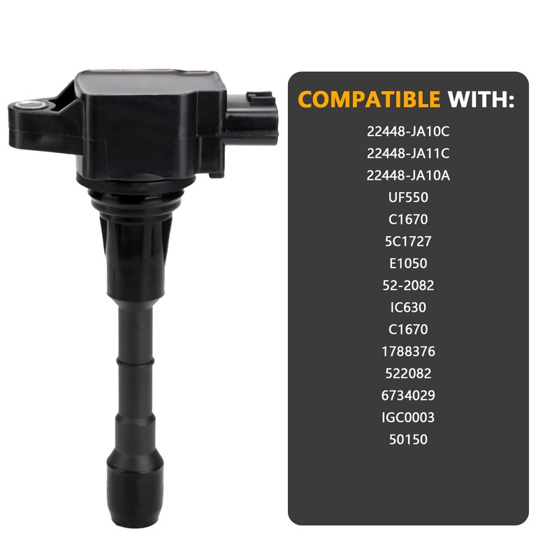 - Ignition coil Reference Number (Part Number or OE Number): 22448-JA10C,22448-JA11C,22448-JA10A,UF550,C1670,5C1727,E1050,52-2082,IC630,C1670,1788376,522082,6734029,IGC0003,50150.