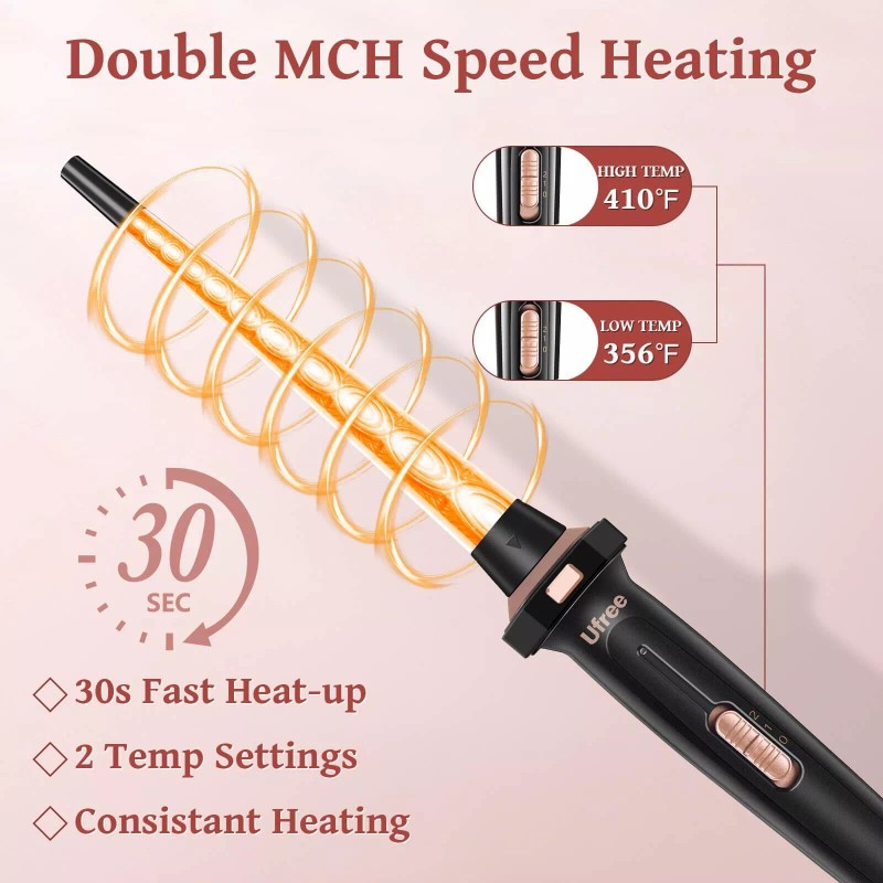 30s Fast Heat Up & 2 Temp Settings: This hair curlers achieve salon-worthy results in seconds with double MCH instant heating technology, perfect for busy mornings or last-minute touch-ups.Two-level temperature adjustment(350℉-410℉) fully meets the hair needs of delicate to coarse type