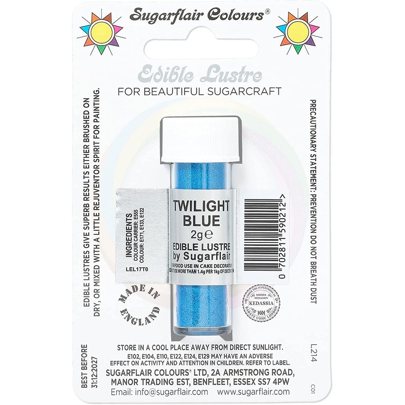 ugarflair Twilight Blue Edible Lustre Dust, Add a Lustrous Shine to Cakes or Decorations. Brush On or Add Rejuvenator to Create Eye-Catching Edible Paint, Gives Shine to Your Bakes - 2g