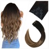 Ugeat Balayage Clip in Hair Extensions Black to Dark Brown Human Hair Balayage Caremel Blonde Clip in Hair Extensions Real Human Hair Double Weft Extensions Clip in Hair 10pcs 20in 100g