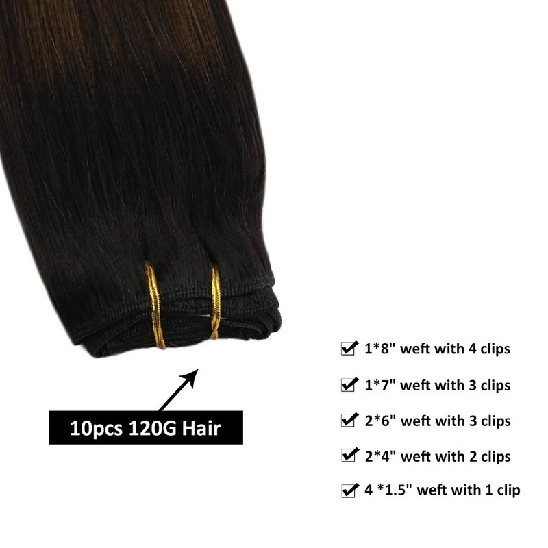 - Details ★ #1B/4/27 Balayage off black to dark brown with caramel blonde color with 10PCS/120G (20G clips and 100G hair) clip in hair extensions. Incredibly easy to apply to every position you want.