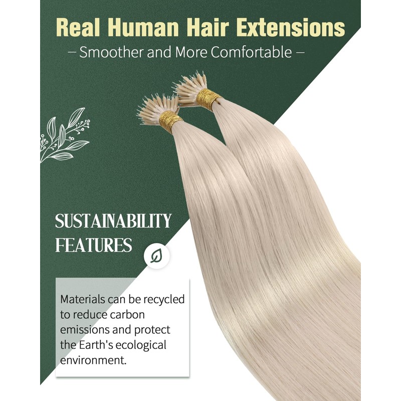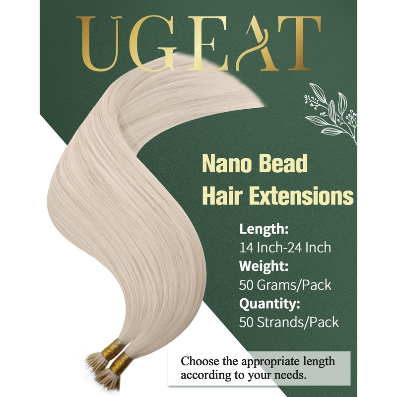 Ugeat Blonde Nano Extensions Human Hair Micro Nano Tip Hair Extensions Remy Platinum Blonde Hair Extensions for Short All Day Comfort Wear 14Inch 50G 50S