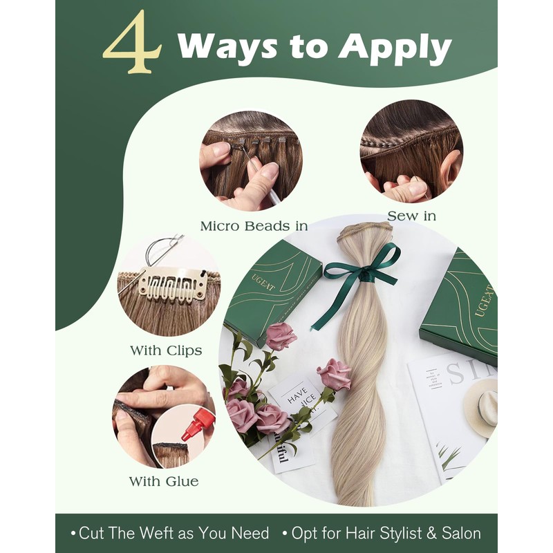 - Enhanced Double Weaves for an Experienced Feel: Ugeat human hair extensions weft enhanced double weft technology ensures that the hair is evenly distributed, resulting in fewer tangles and less frizz, while also creating a smoother and more textured sensation. Our breathable wefts offer a seamless,natural appearance and full, vibrant hair for an enhanced experience.