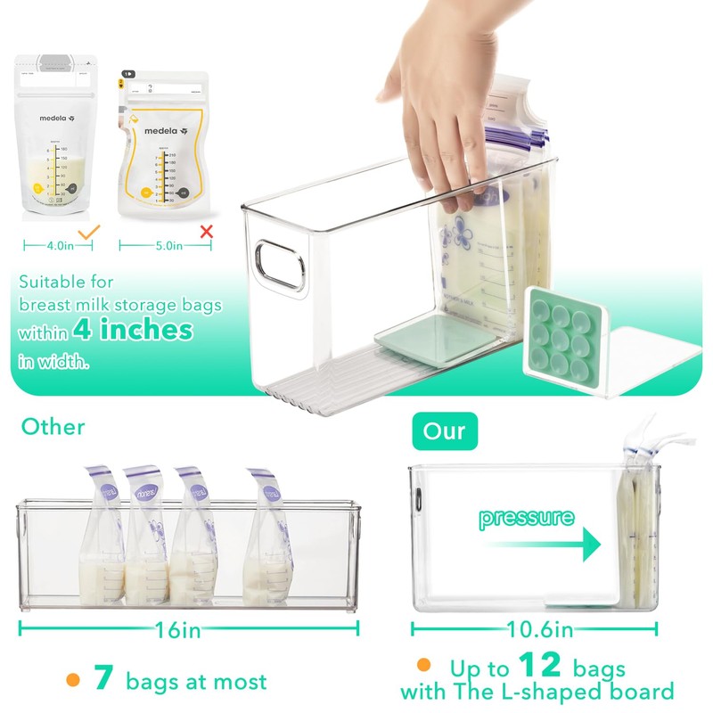 - Due to the removable dividers, same freezer space would contain more milk baggies.