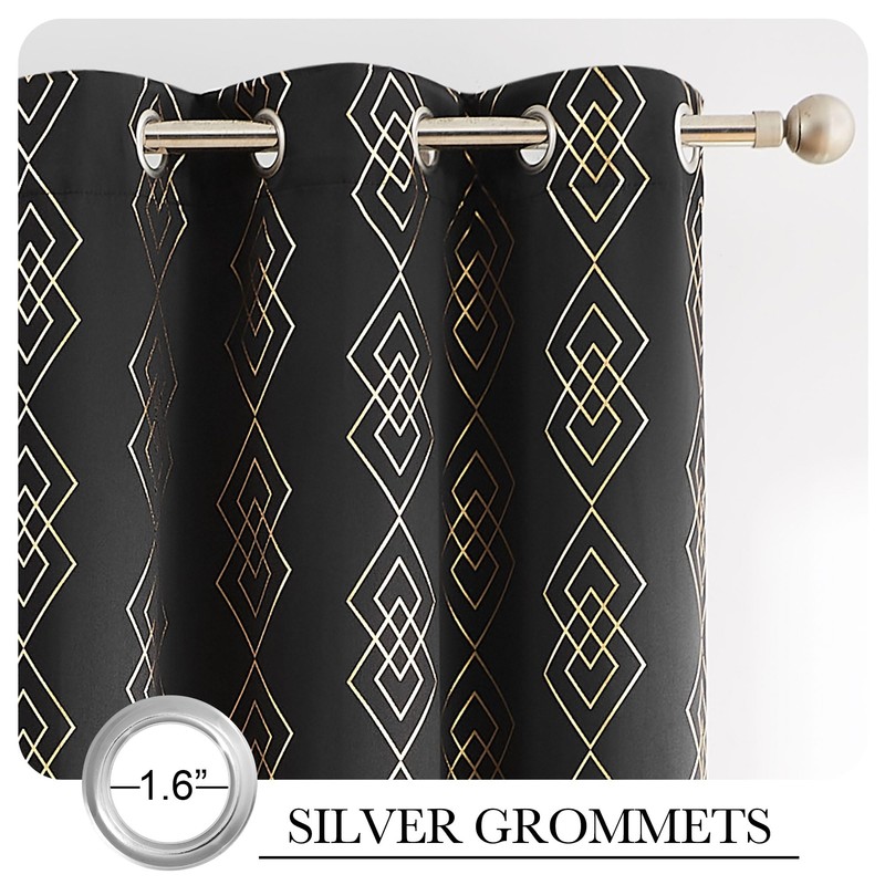 UGOUTRY 100% Blackout Curtains for Berdoom, Gold on Black Metallic Geometric Diamond Pattern Curtains 63 Inches Long Living Room Darkening Thermal Insulated Drapes Grommet Top Window Curtain, 2 Panels